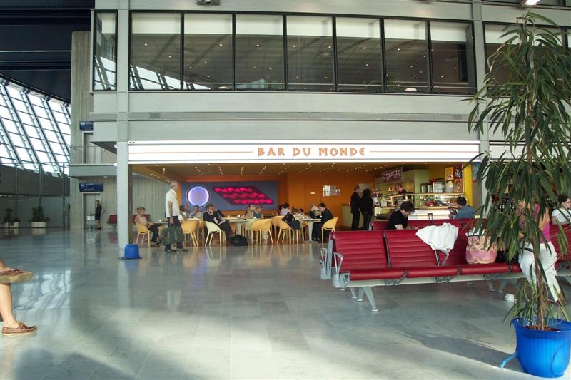 Inside the airport waiting area.